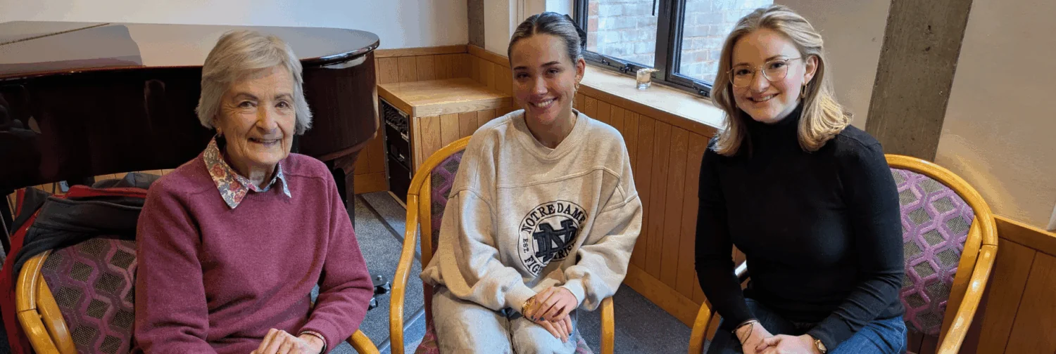 Using the Roger for the meetings, resting in the middle of the table in table mode, I could hear what people were saying, and make contributions without the potential embarrassment of getting the wrong end of the stick! Both rooms were non-resonant. The second meeting (pictured) took place at my Cambridge college, with two current students both of whom have been deaf since childhood. We discussed the particular problems relating to student life, from lecturers who can’t use microphones properly to the impossibility of hearing anyone at a drinks party or formal hall…